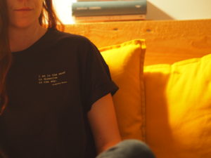 Piszę to teraz ja. Sama mająca na sobie koszulkę z cytatem z Virginii Woolf: „I am in the mood to dissolve in the sky.”