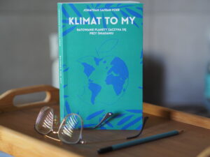 Jakiś czasu temu napotkałam na parkingu osiedlowym już znacznie wysłużone eksploatacją i wiekiem auto marki BMV. Nie było w tym nic osobliwego, ponieważ starych aut na drogach mamy trochę w Polsce. Moją uwagę przykuła przede wszystkim naklejka na zderzaku krzycząca „Fuck you Greta!” Moja zdolność pojmowania ludzkich zachowań do dziś nie jest w stanie pojąć nienawiści wobec autystycznej aktywistki, która po prostu chciała powiedzieć światu jak jest. Że musiała zrobić to nastolatka, a starsi niekoniecznie chcą się słuchać. Ilość memów z twarzą Grety Thunberg jest obecnie pewnie niezliczona. Na szczęście Greta nie jest jedyną, która wzięła się do mówienia głośno, że jeśli nie zmienimy toru, to niechybnie i najzwyczajniej na świecie – wyginiemy. Niedługo po lekturze „Klimat to my” mogliśmy obejrzeć na Netflixie film dokumentalny Davida Attenborough, który porusza niemal wszystkie te same aspekty niszczenia środowiska i oferuje te same rozwiązania, które prezentuje nam w swojej książce Jonathan Safran Foer. Jonathan nie pierwszy raz zabiera głos w sprawie ratowania planety. „Eating animals” jako książka i film przemówiły już do wielu chcących słuchać. I z tymi chętnymi słuchaczami na świecie jest problem. Z tymi wszystkimi „Fuck you Greta”. Przekonanego już nie musisz przekonywać, ale jak zerwać te naklejki nienawiści i braku wiary w to, że niszczymy doszczętnie naszą planetę? Nasz dom? Zrobi to nastolatka, wzięty i charyzmatyczny polityk, znany wielu David czy pisarz pokroju Jonathana?