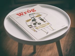 Czym jest z kolei „Wróg”? Literatura przeznaczona dla młodszego odbiorcy wciąż mnie zadziwia. Przypominają mi się w tym momencie słowa założycielki wydawnictwa Poławiacze Pereł, Dominiki Żukowskiej, która podczas naszego spotkania z niezależnymi wydawcami w trakcie trwania Targów Książki w Poznaniu podkreśliła, że nie ma czegoś takiego jak „książeczka dla dzieci”. Literatura dziecięca to pełnoprawna literatura, a „Wróg” jest tego idealnym przykładem. Uderzy w młodego i dorosłego odbiorcę. Po raz kolejny zachwycam się formą i talentem, które w połączeniu kreują wybitne treści. Te z kolei w przewrotny sposób wyklarują młodemu odbiorcy trudne tematy. Ponieważ jak dziecku wyjaśnić śmierć, obozy zagłady, krew, spustoszenie, bitwy i niczym nieusprawiedliwioną nienawiść wymierzoną w drugiego człowieka?