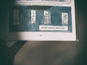 Żaden z tych komiksów nie sięga po kolory. Oba są zimne, stonowane, mroźne i mroczne w doborze barw. Nie da się kolorowo opowiedzieć historii ich autorek. Alison Bechdel już od pierwszych stron przyciąga nie tylko trafnością kreski, ale objawia się jako prawdziwy talent literacki. Dowodzi, że komiks to skondensowana wybitność literacka. Bechdel jest wnikliwą analityczką samej siebie. Gdy momentami wydawało mi się, że dopada ją zagubienie, to po chwili trafność jej spostrzeżeń wynurzała się i uderzała swą prawdziwością. Na uwagę zasługuje chronologiczna huśtawka, która wbrew pozorom nie zaburza narracji, ale pozwala jeszcze dogłębniej pojąć dzieciństwo i powolne wychodzenie z szafy. Osobiście ujęły mnie też liczne odniesienia kulturowe do wszelakich dzieł literackich i wydarzeń sceny historycznej, które powinny przykuć uwagę osób nie tylko LGBT. To niemal wytrawne śledztwo literackie, które możemy prześledzić po lekturze komiksu samodzielnie. Literatura staje się tu lekarstwem, nośnikiem dialogu milczącej rodziny.