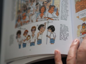 Powróćmy do pytania – jak ukazać powrót? Na wstępie przyznam, że nieważne ile książek o podobnej tematyce przeczytałam, to wciąż miałam luki w wiedzy na temat konfliktów palestyńsko-izraelskich czy nawet czym różnią się od siebie jarmułki. Nie sądziłam, że najlepiej dokształci mnie komiks o tytule „Falafel na ostro”. To dzięki niemu dowiaduje się co to jest alijah, której autor dokonuje właśnie na planszach swojej autobiograficznej opowieści.